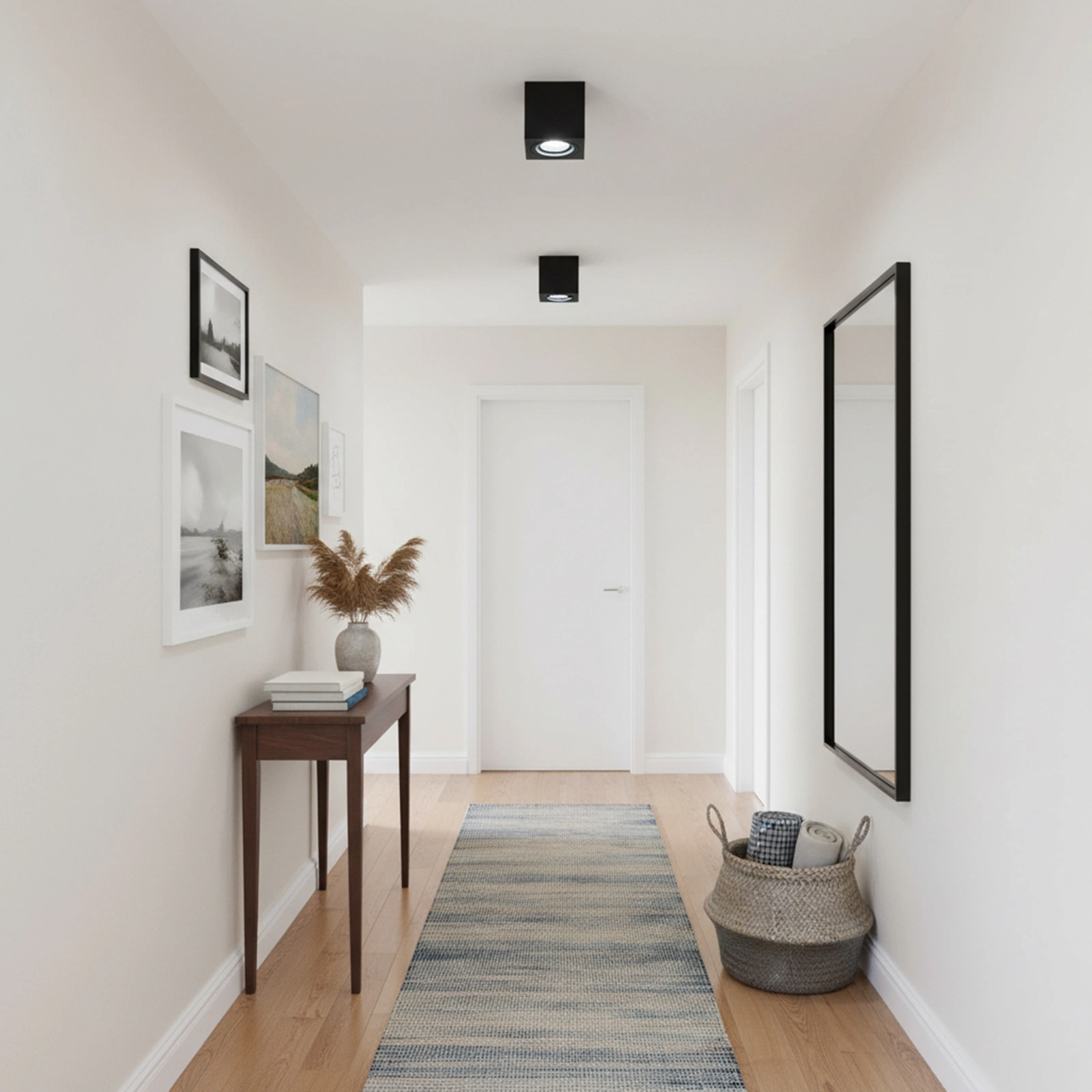 Czarna, matowa oprawa o kwadratowym kształcie to nowoczesny akcent, który doskonale komponuje się z industrialnymi, minimalistycznymi czy klasycznymi aranżacjami. Niewielkie wymiary i natynkowy montaż sprawiają, że oprawy pasują zarówno do mieszkań, jak i przestrzeni komercyjnych – bez konieczności ingerencji w sufit.