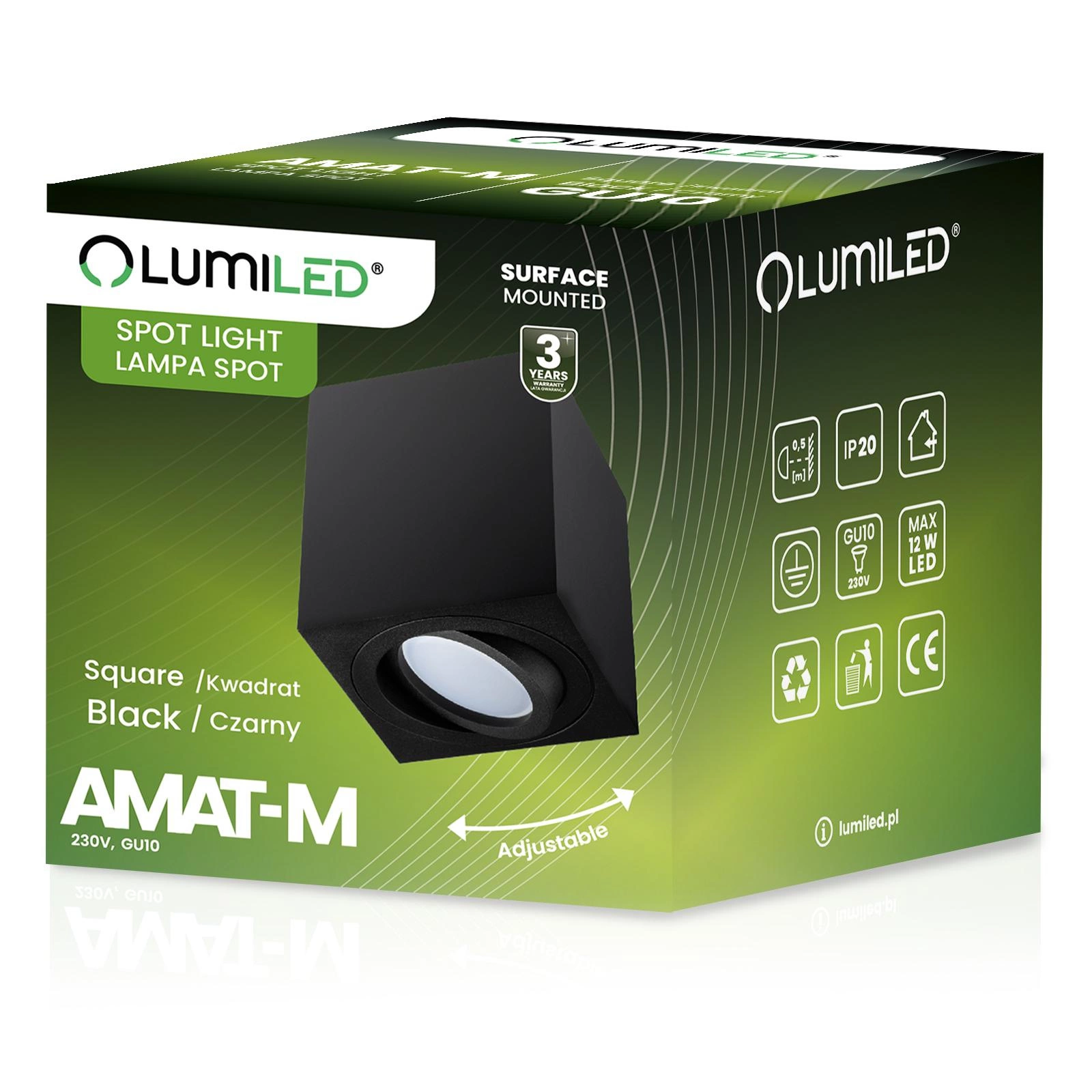 Oprawa Natynkowa HALOGENOWA Spot Tuba Ruchoma GU10 Kwadratowa Czarna 84mm AMAT-M LUMILED - skład produktu
