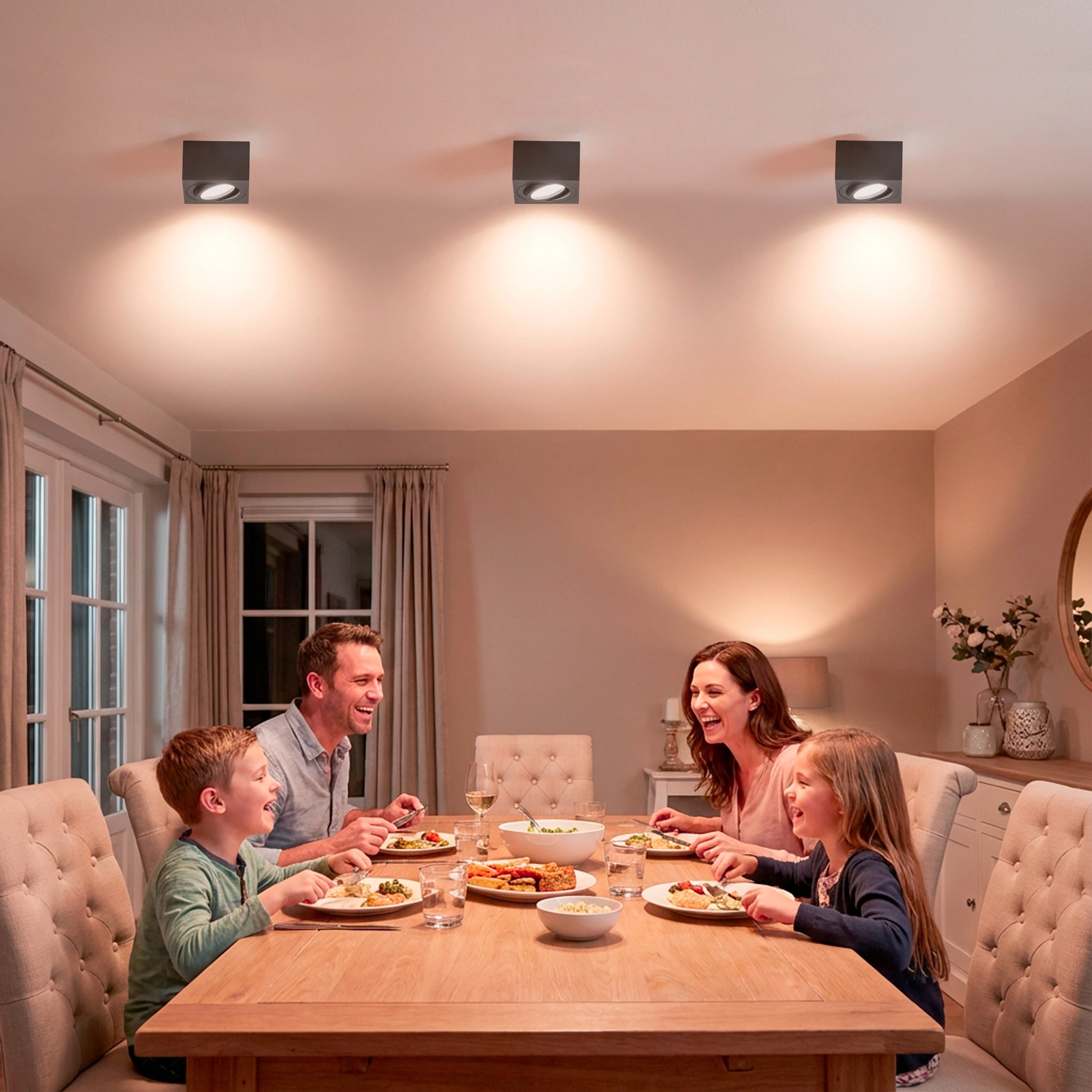 Czarna, matowa oprawa o kwadratowym kształcie dodaje wnętrzu nowoczesnej elegancji i świetnie komponuje się zarówno z industrialnymi, jak i klasycznymi aranżacjami. Montaż natynkowy pozwala zamocować lampę bez kłopotliwego przerabiania sufitu, dzięki czemu instalacja przebiega szybko i bezproblemowo.