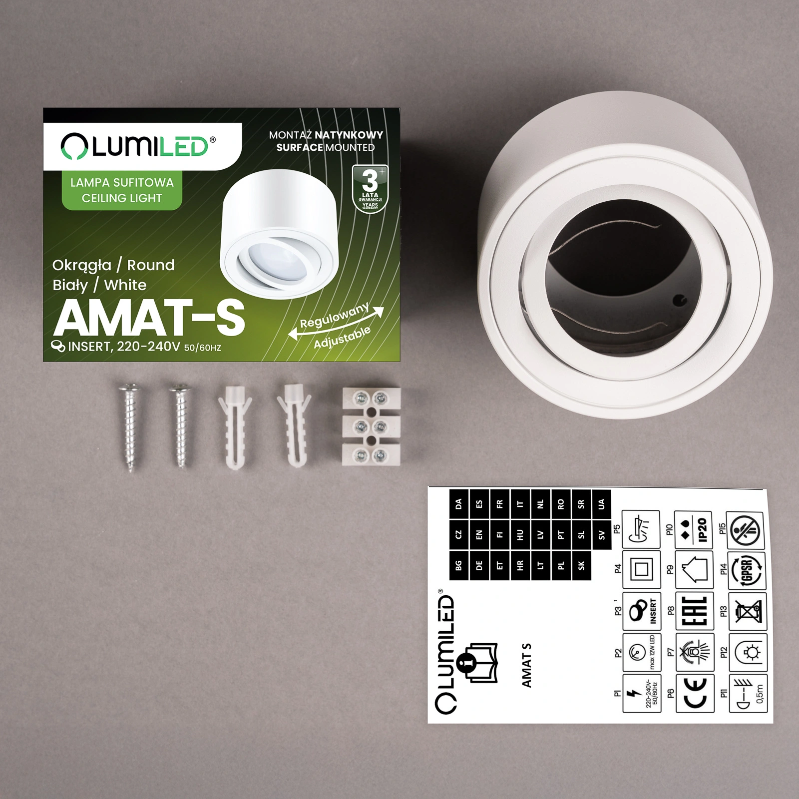 Biała, matowa oprawa o okrągłym kształcie to nowoczesny akcent, który doskonale komponuje się z industrialnymi, minimalistycznymi czy klasycznymi aranżacjami. Niewielkie wymiary i natynkowy montaż sprawiają, że oprawy pasują zarówno do mieszkań, jak i przestrzeni komercyjnych – bez konieczności ingerencji w sufit.