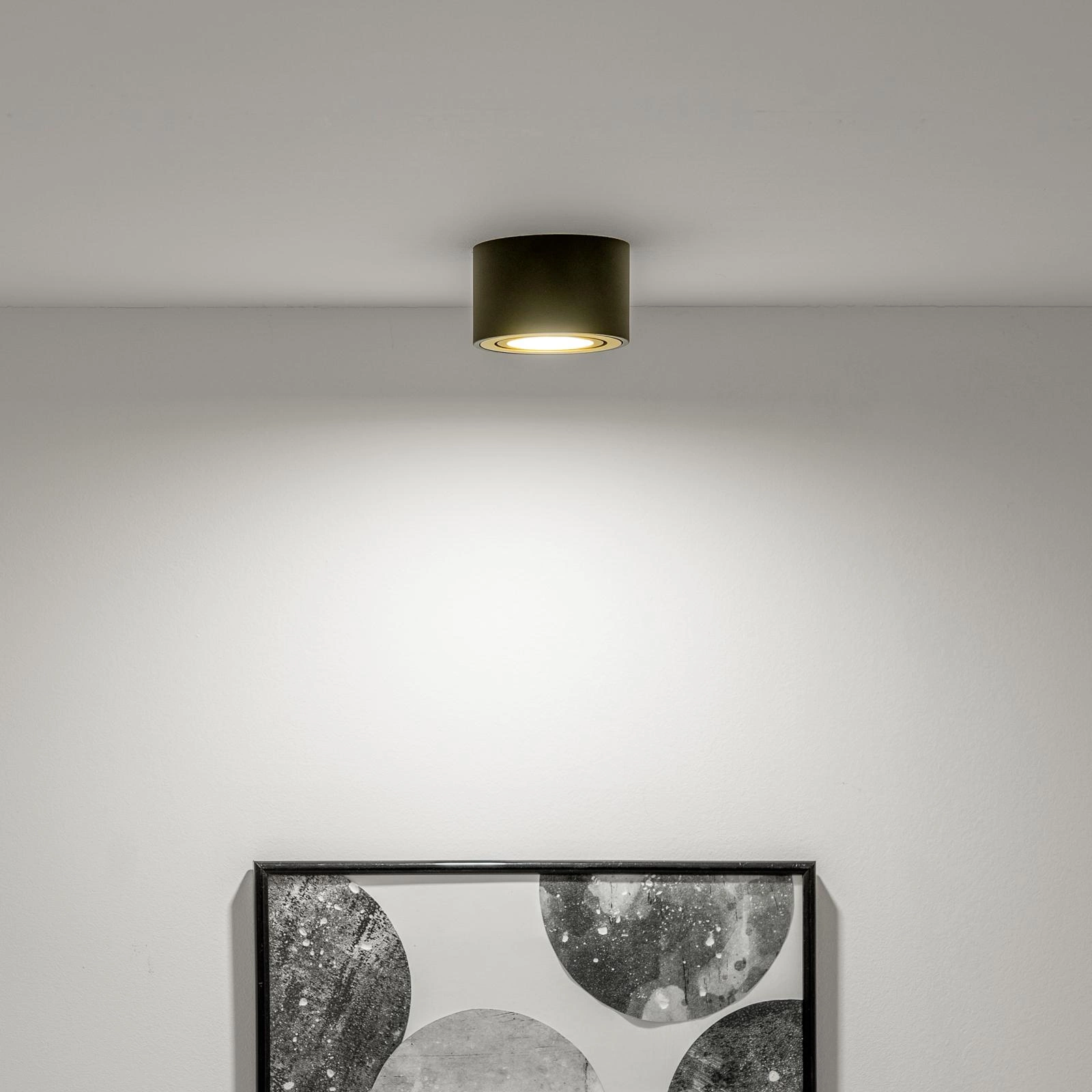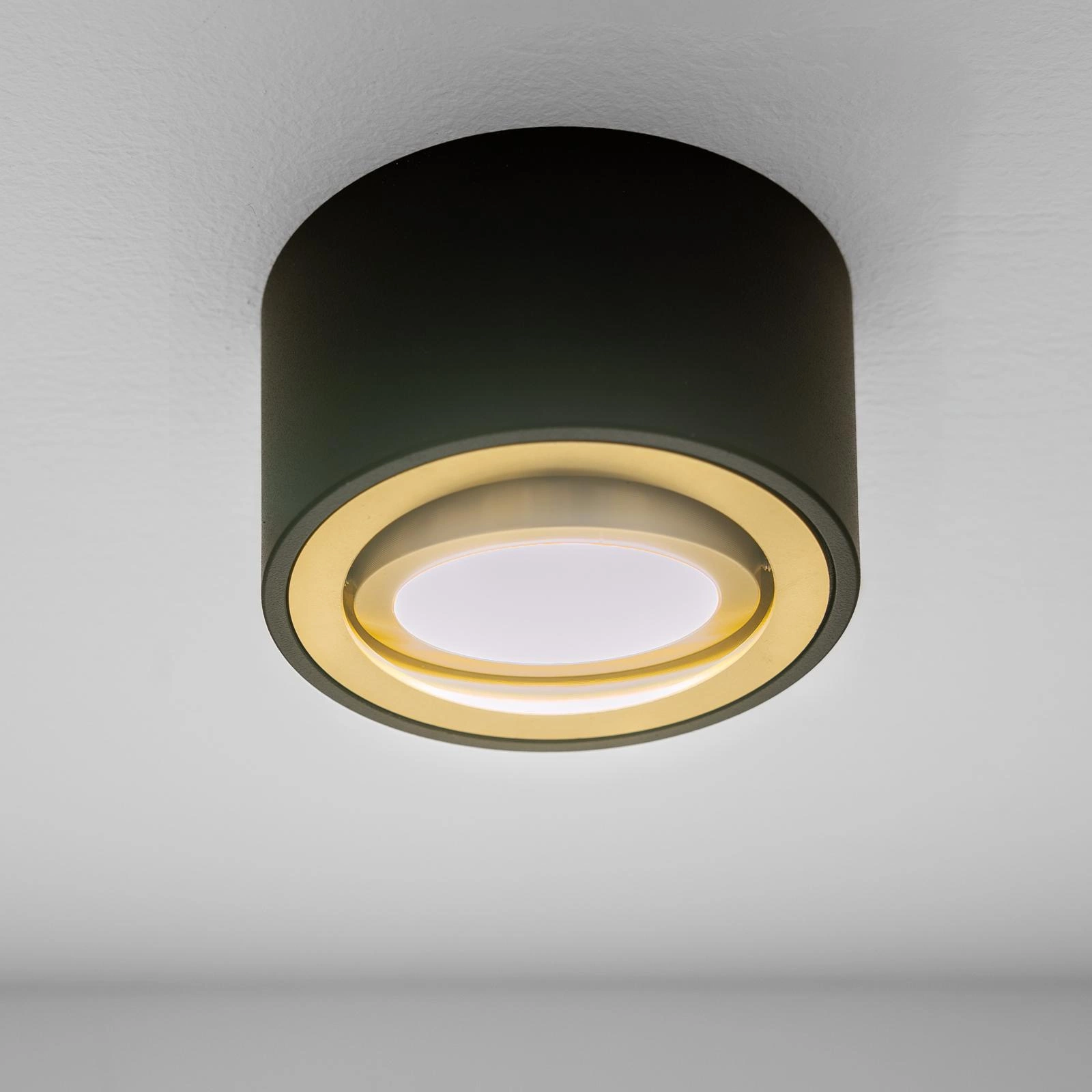 Oprawa natynkowa AMAT to nowoczesne oświetlenie sufitowe od renomowanej marki LUMILED. Oprawa wyróżnia się eleganckim, nowoczesnym wyglądem, który idealnie wpisuje się w aktualne trendy wnętrzarskie. Jej czarna, matowa obudowa nadaje jej stylowy, minimalistyczny charakter, który pasuje zarówno do nowoczesnych, jak i klasycznych aranżacji. Wnętrze oprawy ozdobione jest złotym pierścieniem, który dodaje oprawie luksusowego akcentu oraz subtelnie odbija światło, tworząc ciepły i przytulny efekt. Połączenie czerni i złota to ponadczasowa kombinacja, która podkreśla elegancję i wysoką jakość produktu.