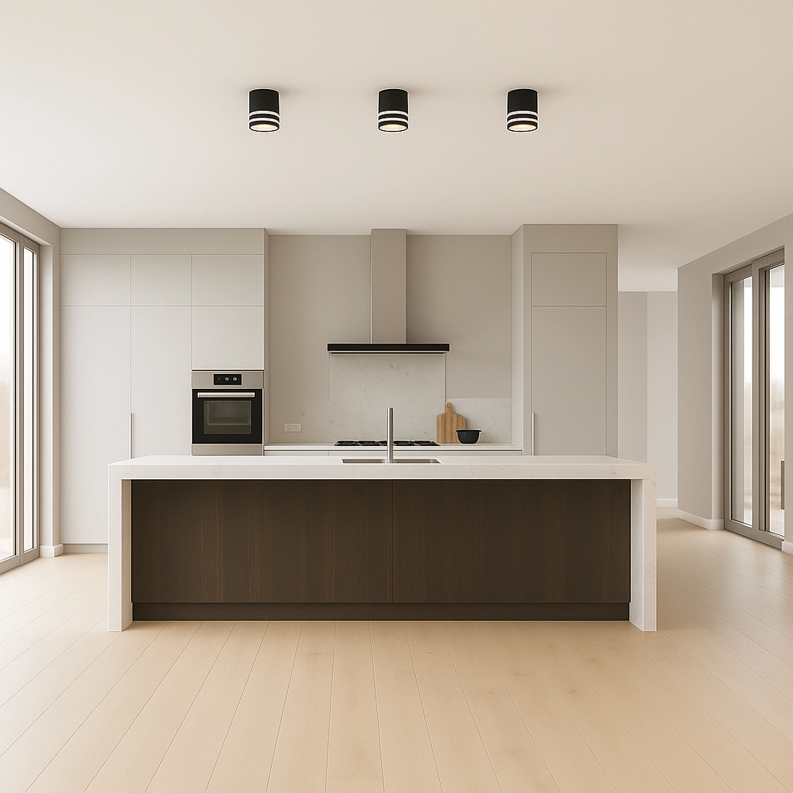- Szybki montaż: montaż natynkowy umożliwia sprawne uporządkowanie oświetlenia, co pozwala poprawić funkcjonalność przestrzeni bez ingerencji w sufit i bez dodatkowych prac.