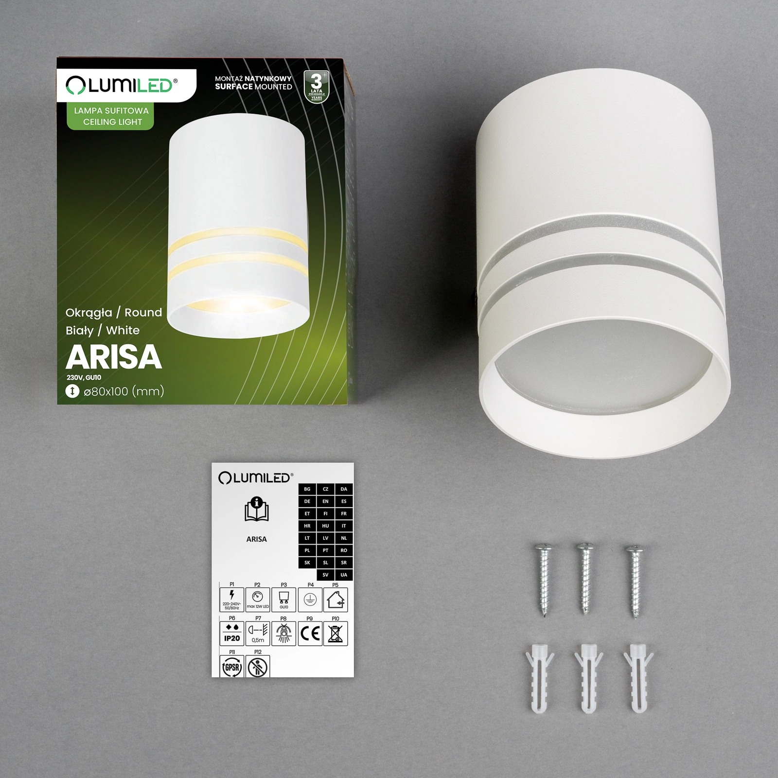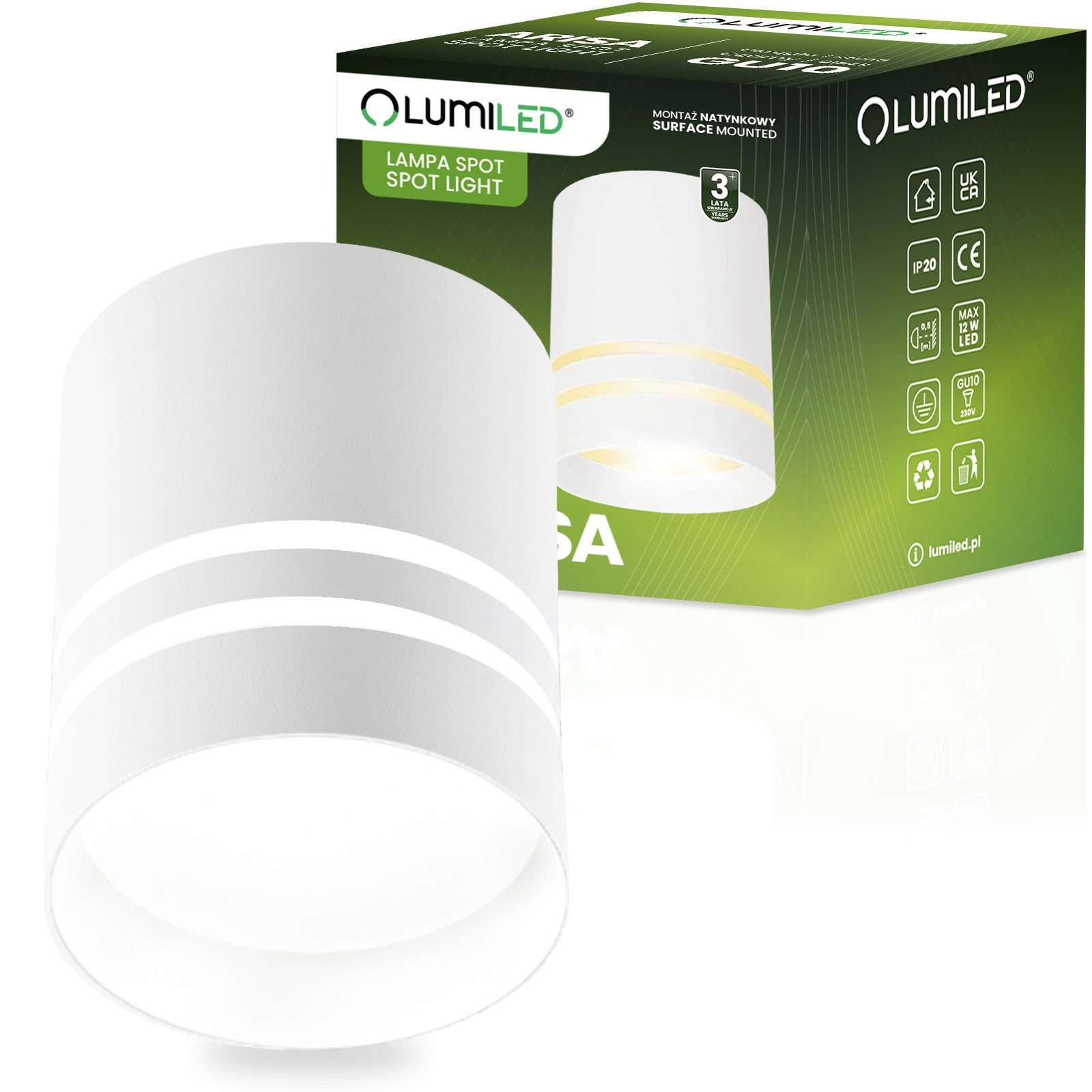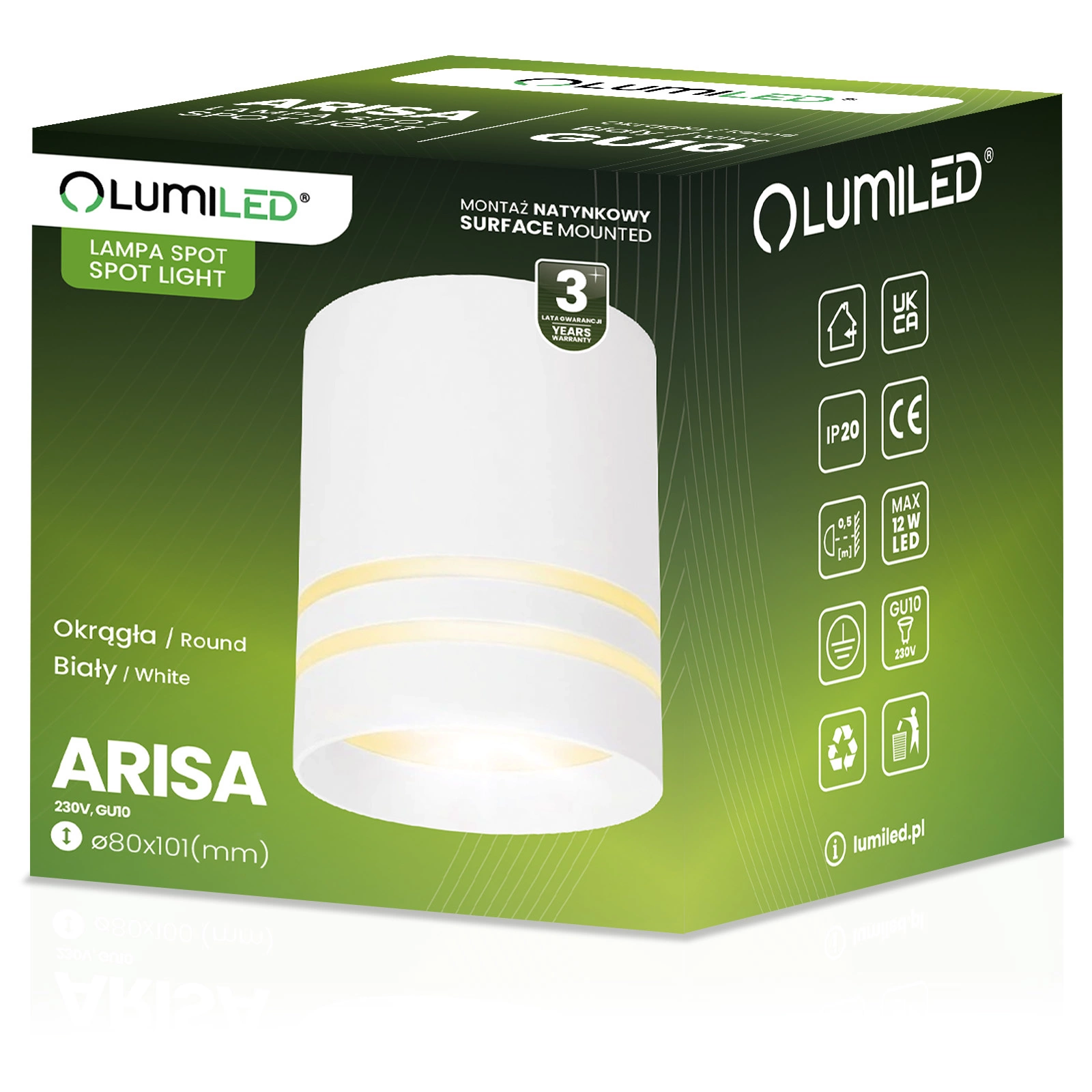 Oprawa natynkowa ARISA marki Lumiled pomaga wprowadzić do wnętrza światło, które realnie poprawia komfort codziennych czynności. Precyzyjnie prowadzone światło tworzy jasną, uporządkowaną strefę o wysokim komforcie widzenia, sprzyjającą codziennym aktywnościom. Stylowe białe wykończenie dodaje wnętrzu klasy, tworząc elegancki akcent pasujący do nowoczesnych aranżacji. Natynkowy montaż pozwala łatwo odświeżyć oświetlenie bez dużych prac, a dobór dowolnej żarówki GU10 daje możliwość stworzenia takiej atmosfery, jaka najlepiej sprawdza się w Twojej przestrzeni – od przytulnej po bardziej energiczną.