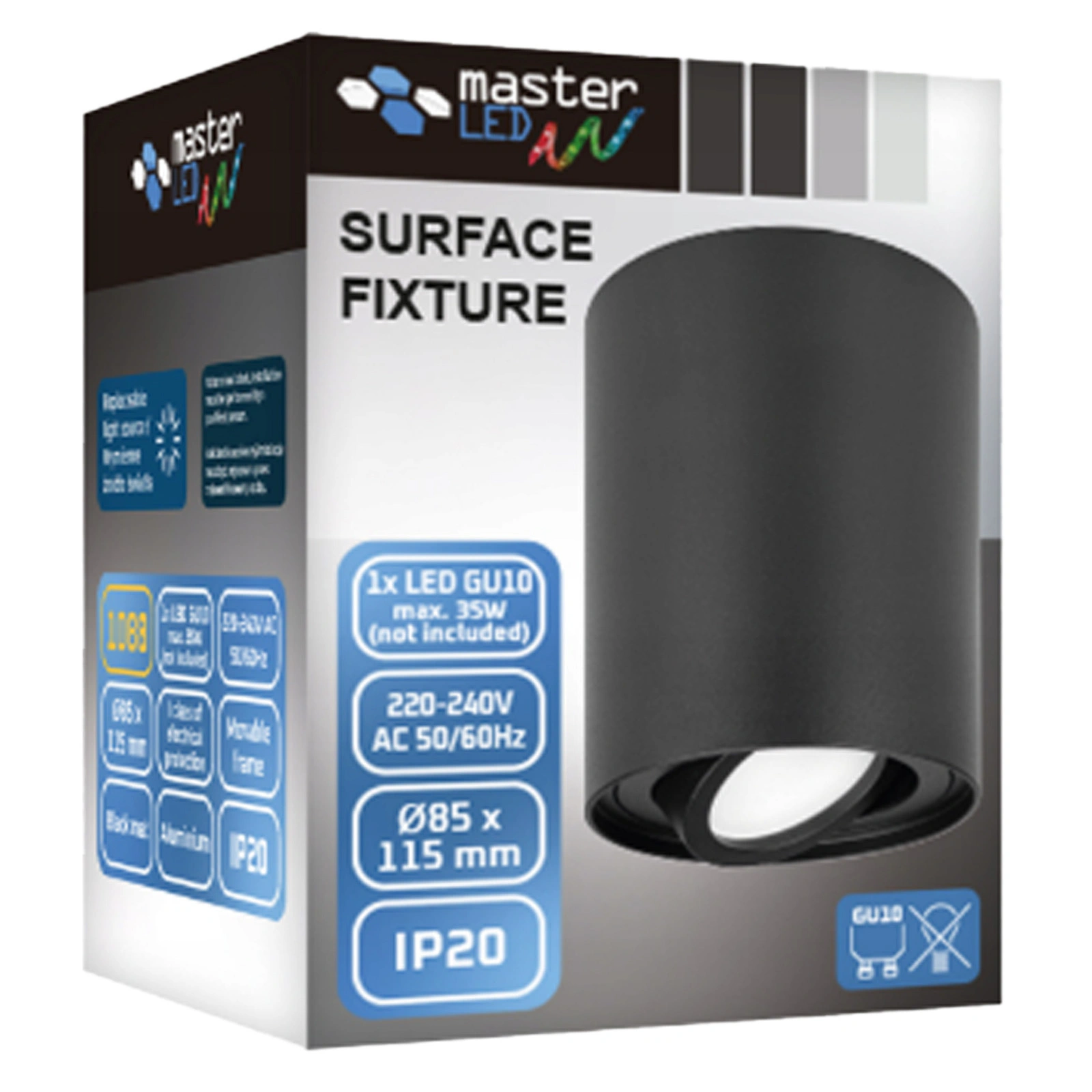 Sufitowa oprawa natynkowa w kolorze czarnym to nowoczesna oprawa wykonana wysokiej jakości materiałów. Oprawa została przystosowana do montażu natynkowego, w połączeniu z żarówką LED o trzonku GU10 może służyć jako oświetlenie dekoracyjne, a także jako oświetlenie ogólne w większych otwartych pomieszczeniach, gdzie zastosowanie pojedynczego źródła światła okazuje się niewystarczające. Dzięki swojemu nowoczesnemu wyglądowi swoje zastosowanie znajdzie w każdym nowocześnie urządzonych mieszkaniu, domu czy biurze.