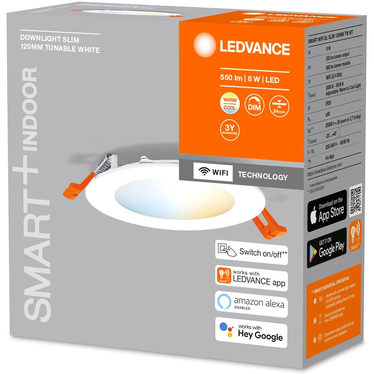 - Sterowanie za pomocą aplikacji LEDVANCE SMART + WiFi (z co najmniej Androidem 4.4 lub iOS 9.0).