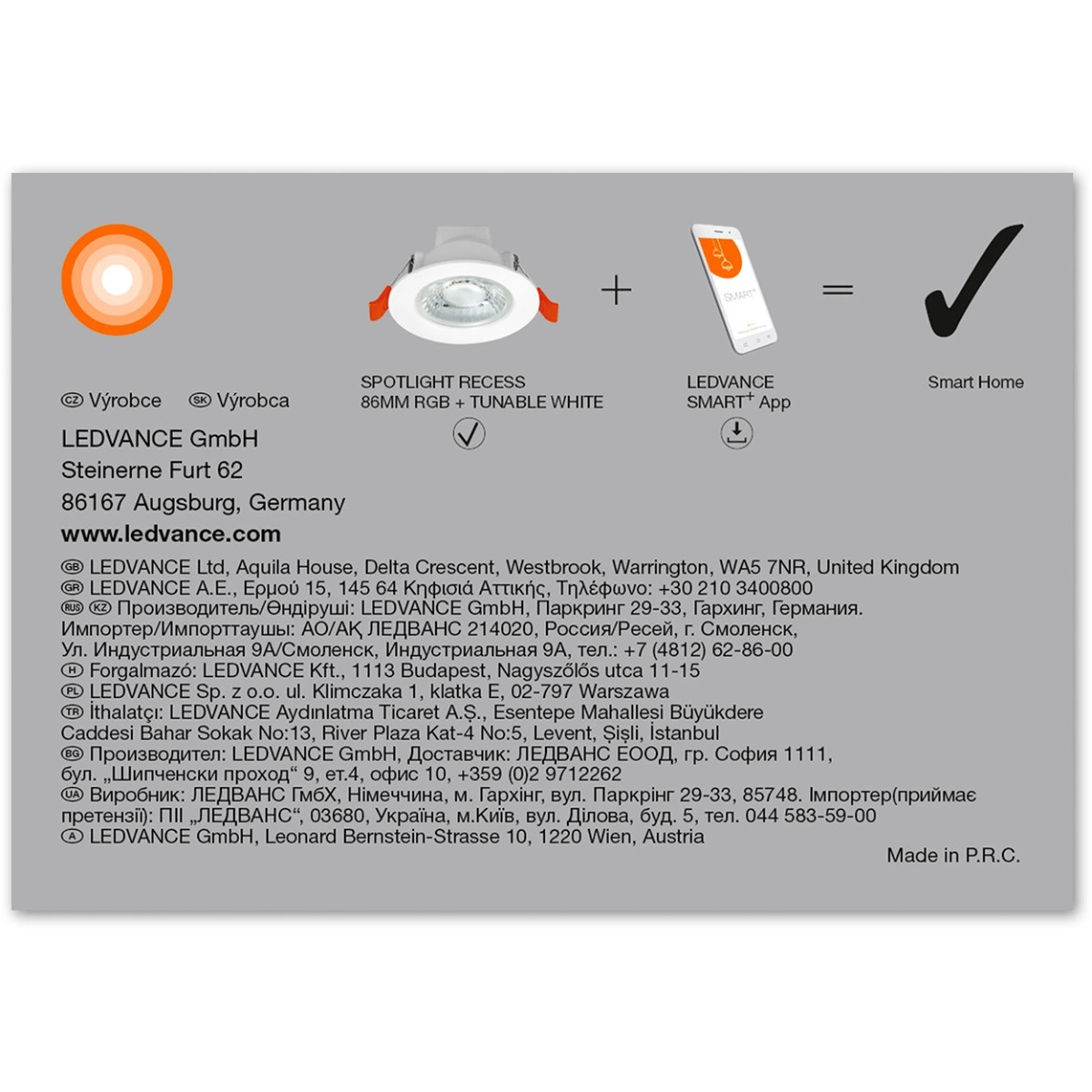 - Możliwość sterowania za pomocą aplikacji LEDVANCE SMART+ (z systemem Android co najmniej 8.0 lub iOS 14.0).