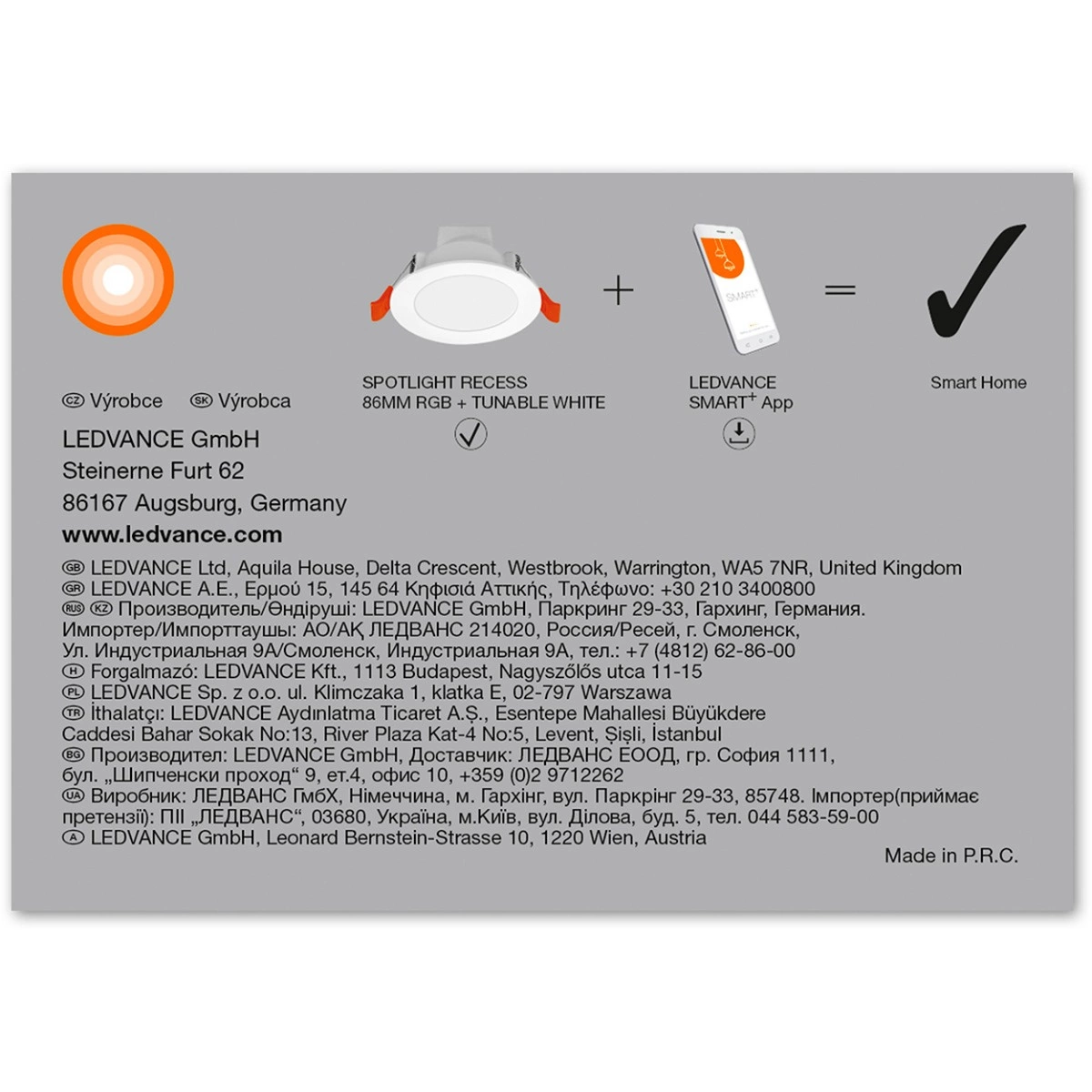 - Możliwość sterowania za pomocą aplikacji LEDVANCE SMART+ (z systemem Android co najmniej 8.0 lub iOS 14.0).