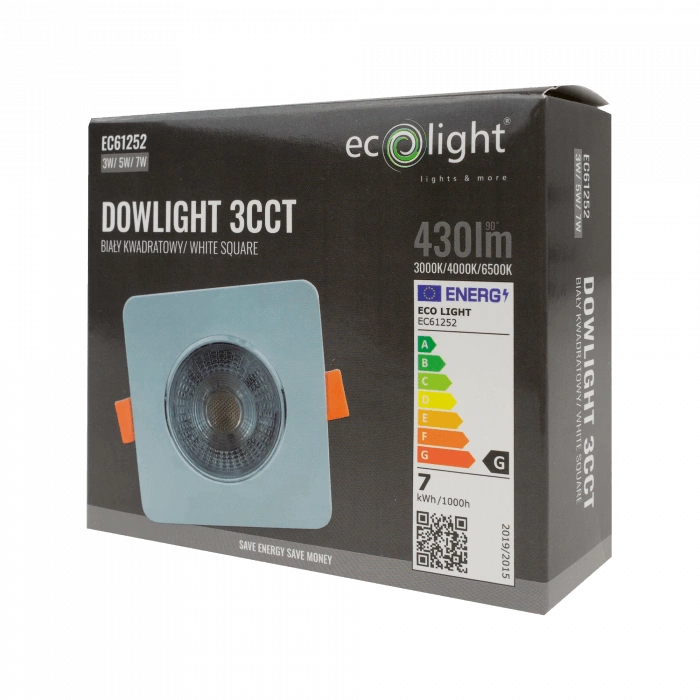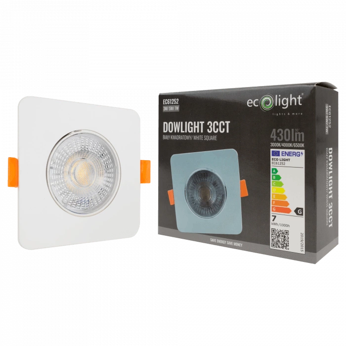 Odkryj nowy wymiar oświetlenia z innowacyjną oprawą podtynkową LED od Ecolight! Kwadratowy design w eleganckim białym kolorze sprawia, że nasz downlight idealnie wkomponuje się w każde wnętrze, dodając mu nowoczesności i stylu. Dzięki regulowanej mocy świecenia - 3W, 5W, 7W oraz możliwości zmiany barwy światła od ciepłej bieli 3000K, poprzez neutralną 4000K, aż do chłodnej 6500K, stworzysz atmosferę dokładnie taką, jakiej potrzebujesz. Intuicyjne przełączniki zadbają o twoją wygodę, a szybki montaż za pomocą sprężyn mocujących to czysta przyjemność.