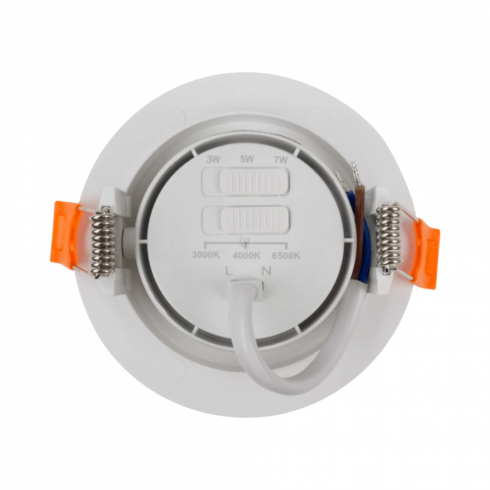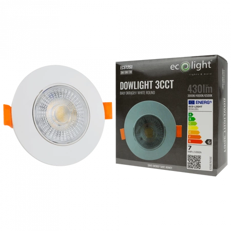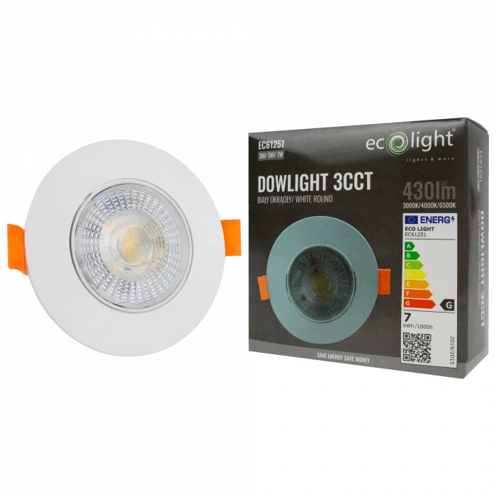 Przemyśl swoje oświetlenie na nowo dzięki nowoczesnej oprawie podtynkowej DOWNLIGHT od firmy Ecolight! Ta elegancka, okrągła oprawa LED w klasycznym białym kolorze to gwarancja stylu i uniwersalności, która doskonale wpasuje się w każde wnętrze. Dzięki możliwości wyboru barwy światła (od ciepłej bieli 3000K, przez neutralną 4000K, aż po chłodną 6500K) oraz regulacji mocy świecenia (3W, 5W, 7W), możesz dostosować atmosferę pomieszczenia dokładnie tak, jak potrzebujesz. Dzięki intuicyjnemu systemowi przełączników masz pełną kontrolę, a montaż za pomocą sprężyn mocujących jest szybki i prosty.