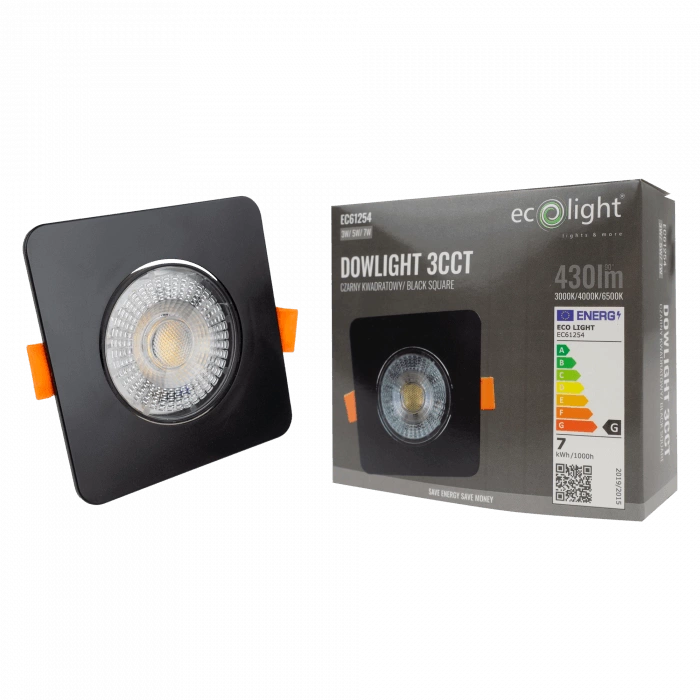 Wprowadź do swojego domu stylowy element nowoczesnego oświetlenia dzięki wpuszczanej oprawie LED Downlight Ecolight. Eleganckie, czarne wykończenie z możliwością regulacji w zakresie mocy: 3W, 5W, 7W oraz różnorodne temperatury barwowej: 3000K, 4000K, 6500K sprawiają, że świetnie dopasowuje się do każdego wnętrza. Dzięki temu możesz dostosować atmosferę pomieszczenia do swoich potrzeb. Kompaktowa konstrukcja, mierząca jedynie 2.5 cm wysokości, gwarantuje estetyczny montaż i dyskretne zakomponowanie w przestrzeni.