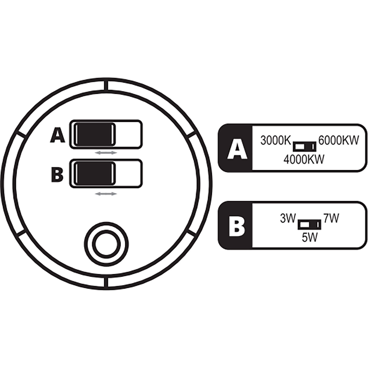 Oprawa została wyposażona w praktyczny system CCT, który umożliwia dostosowanie światła jeszcze przed montażem. Za pomocą przełącznika A wybierzesz jedną z trzech temperatur barwowych, dopasowując oświetlenie do charakteru wnętrza: