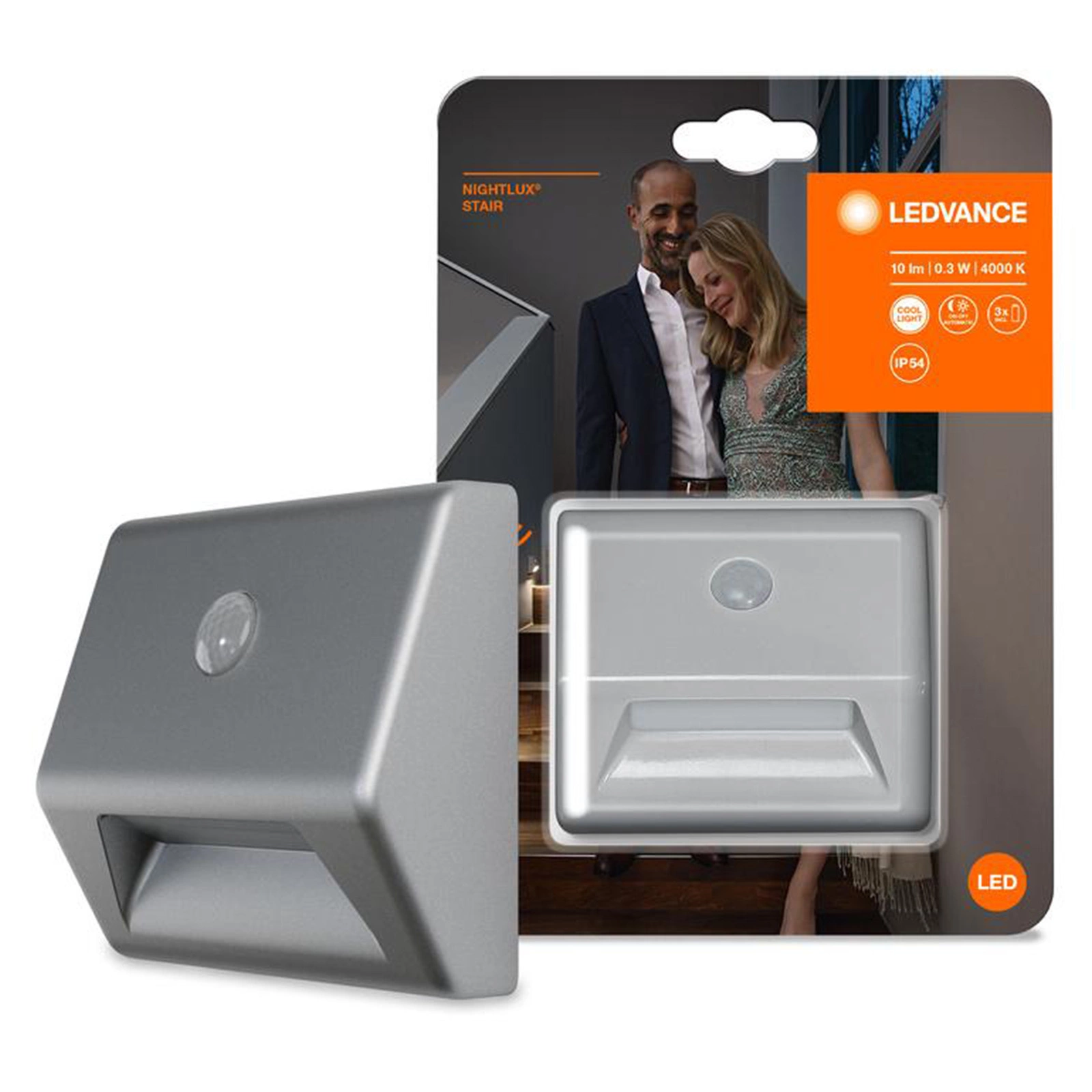 Oprawa Schodowa LED Nightlux Srebrna 0,3W 10lm 4000K IP54 Ledvance Czujnik ruchu
