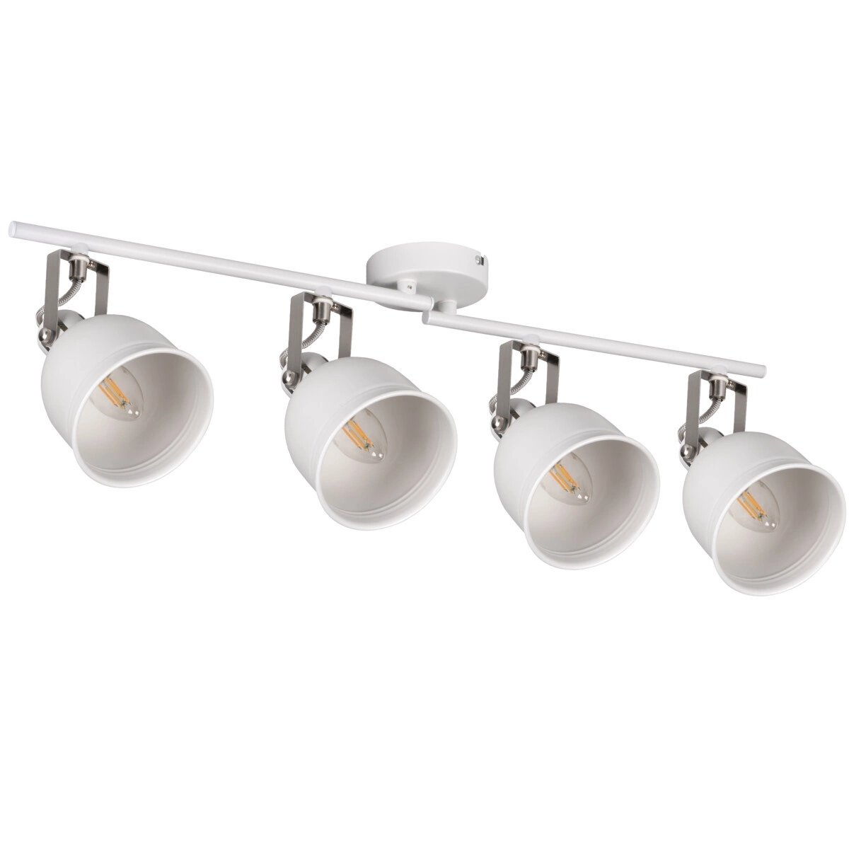 Kanlux DERATO to oprawa nawiązująca do stylistyki retro, wyposażona w cztery punkty świetlne E14 8W. Jej białe wykończenie i szeroka możliwość regulacji kierunku światła (350° i 110°) czynią ją doskonałym wyborem do salonów i sypialni. Szybkozłączka ułatwia montaż.