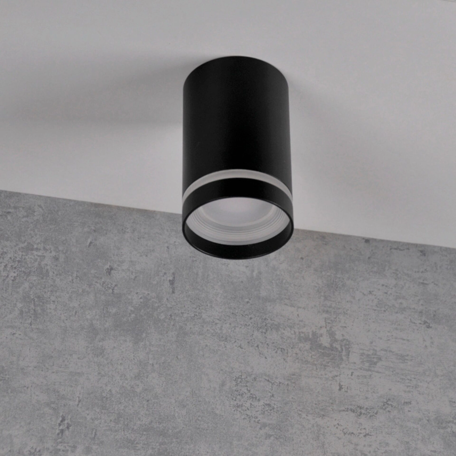 Oprawa Sufitowa Natynkowa FABRI GU10 Tuba Spot Okrągła Ruchoma Czarna Szklany Ring GOLDLUX