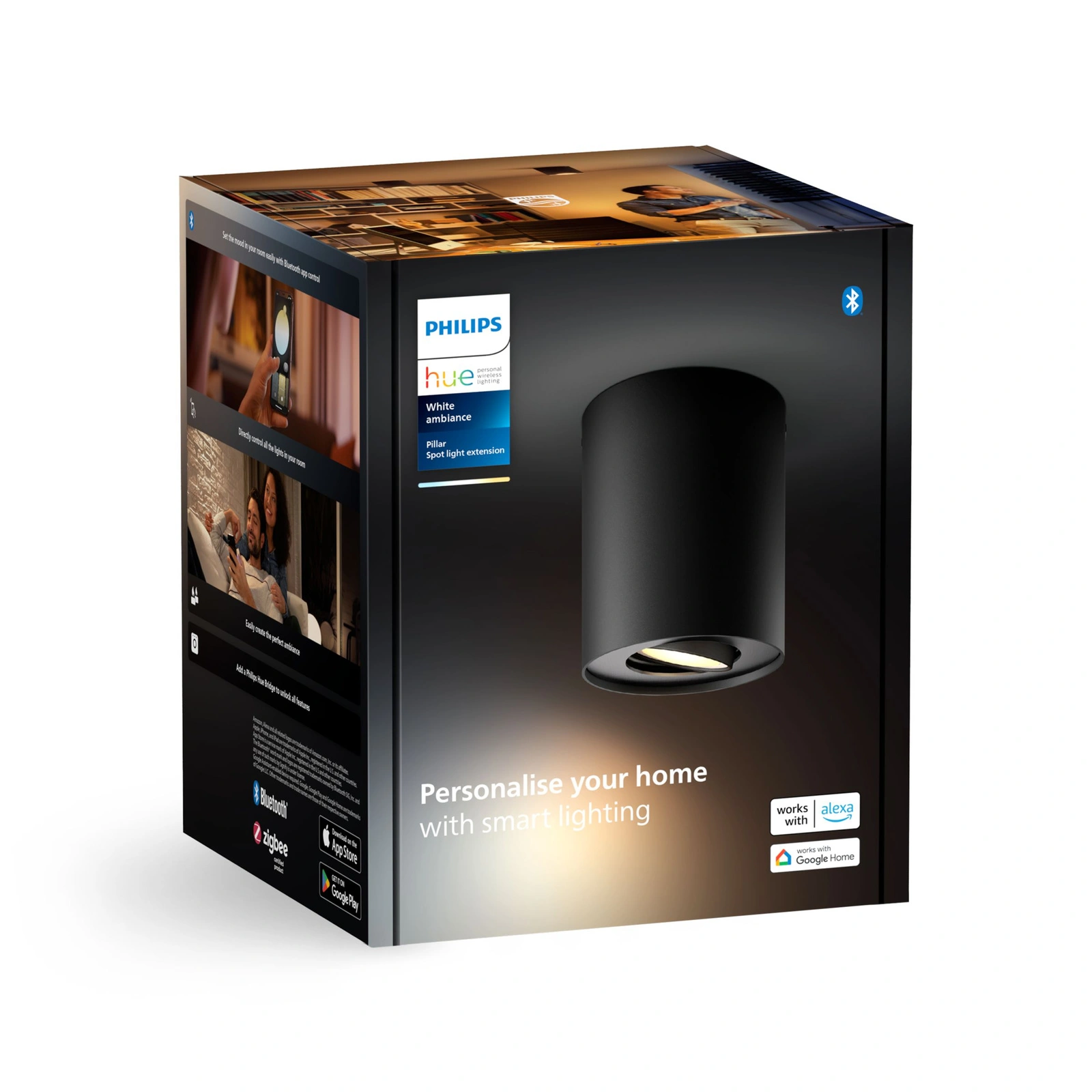Odkryj nowy wymiar oświetlenia z inteligentną lampą sufitową Philips Hue Pillar, której elegancka czarna obudowa doskonale wpasuje się w nowoczesne wnętrza Twojego salonu czy sypialni. Dzięki mocy 4.2 W i strumieniowi świetlnemu 400 lm zapewnia ona idealne oświetlenie o klasycznym, okrągłym kształcie. Philips Hue oferuje pełną kontrolę nad barwą światła o zakresie 2200-6500 K, pozwalając Ci dostosować każde wnętrze do swojej aktualnej nastroju.