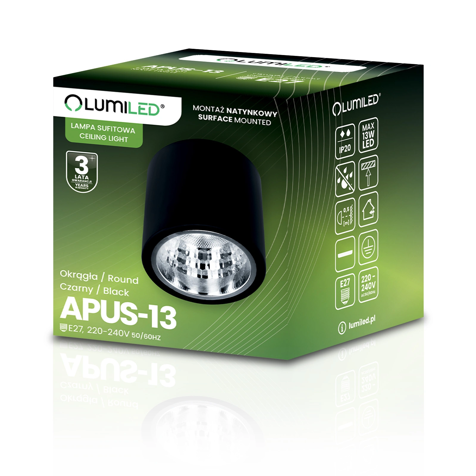 Lampa sufitowa Lumiled APUS-13 to połączenie elegancji i funkcjonalności, które doskonale wpasuje się w każde wnętrze, dodając mu klasy i nowoczesności. Wykonana z trwałego aluminium, gwarantuje długowieczność i estetyczny wygląd przez lata. Dzięki popularnemu trzonkowi E27, wymiana żarówek jest szybka i łatwa, a Ty masz pełną swobodę wyboru energooszczędnych żarówek LED, które idealnie dopasujesz do swoich potrzeb, ciesząc się oszczędnością energii i komfortem użytkowania.