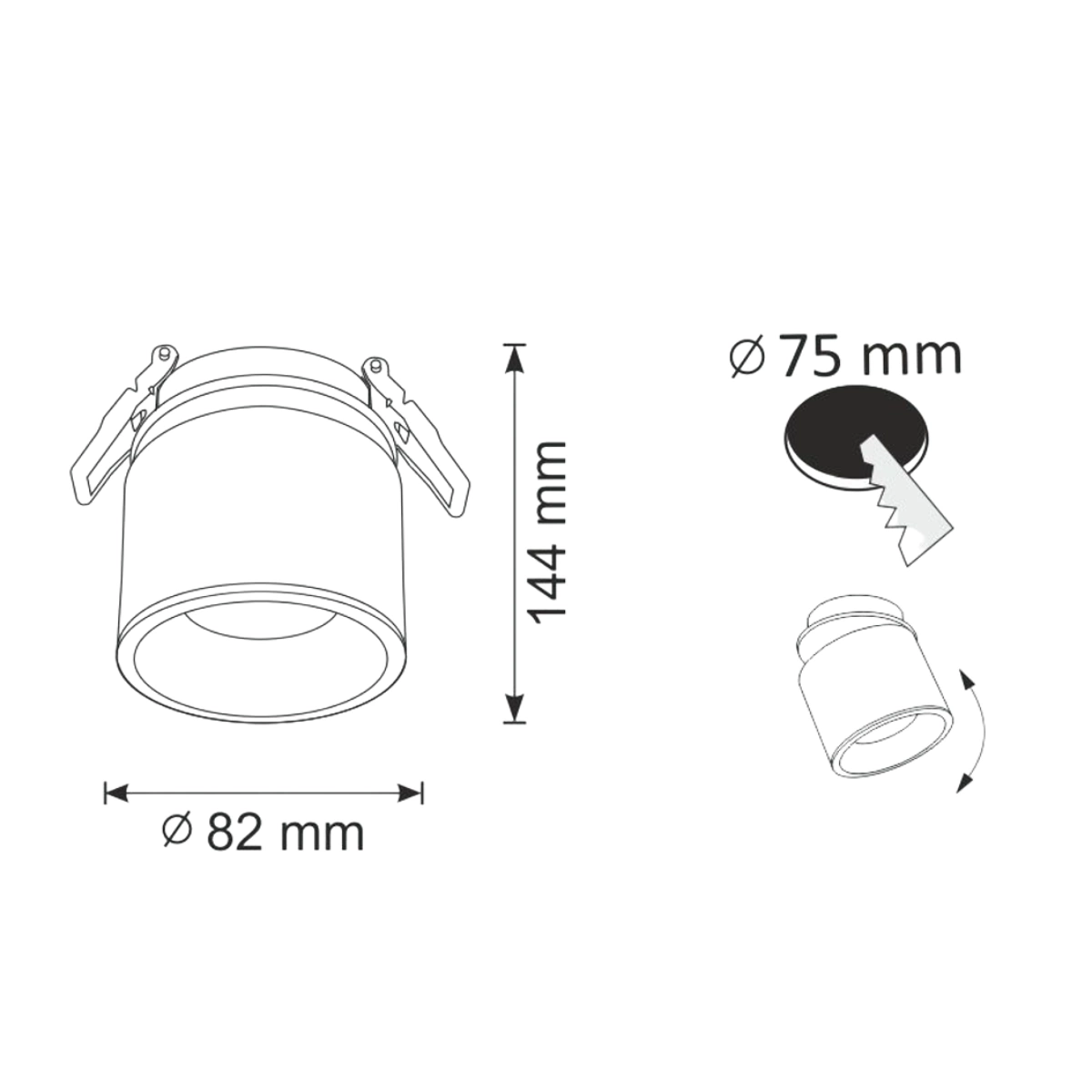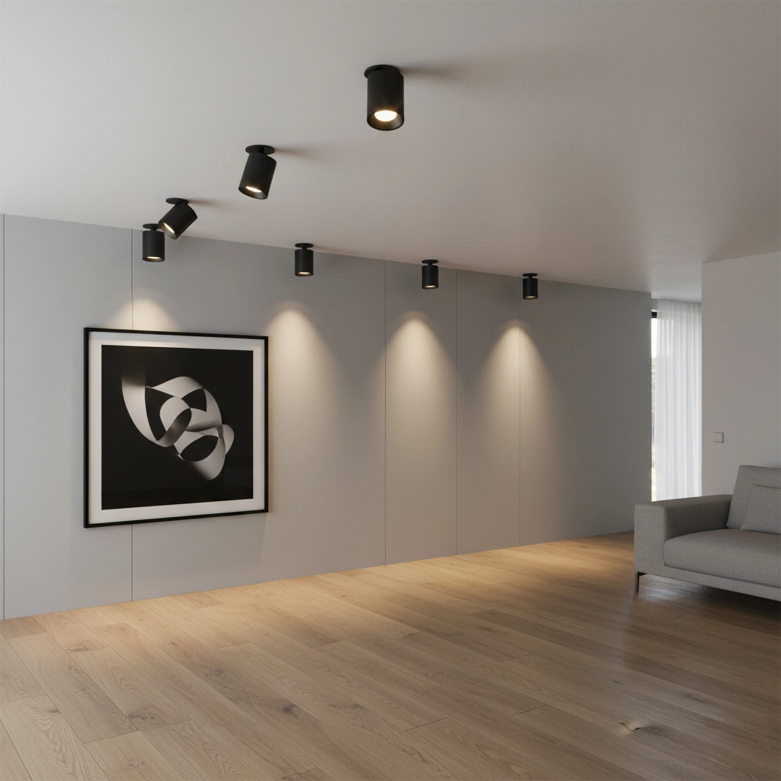 Oprawa Sufitowa Podtynkowa HARON GU10 Tuba Spot Ruchoma Okrągła Czarna GOLDLUX