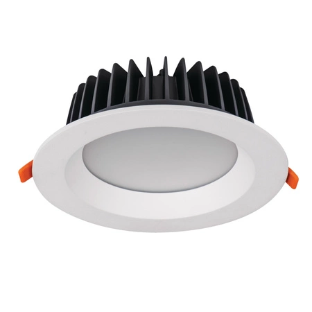 Kanlux TIBERI PRO DOWNLIGHT 40W to wydajna oprawa sufitowa podtynkowa, która oferuje jasność 4200lm przy neutralnej barwie światła 4000K. Dzięki stopniowi ochrony IP44, jest odporna na wilgoć i pył, co czyni ją idealną do stosowania w łazienkach i kuchniach. Biała konstrukcja oprawy wpasowuje się w nowoczesne wnętrza, oferując skuteczne i estetyczne oświetlenie.