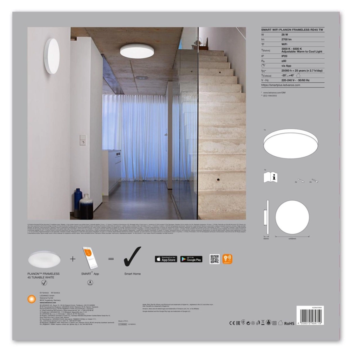 - Możliwość sterowania za pomocą aplikacji LEDVANCE SMART+ (z systemem Android co najmniej 8.0 lub iOS 14.0).