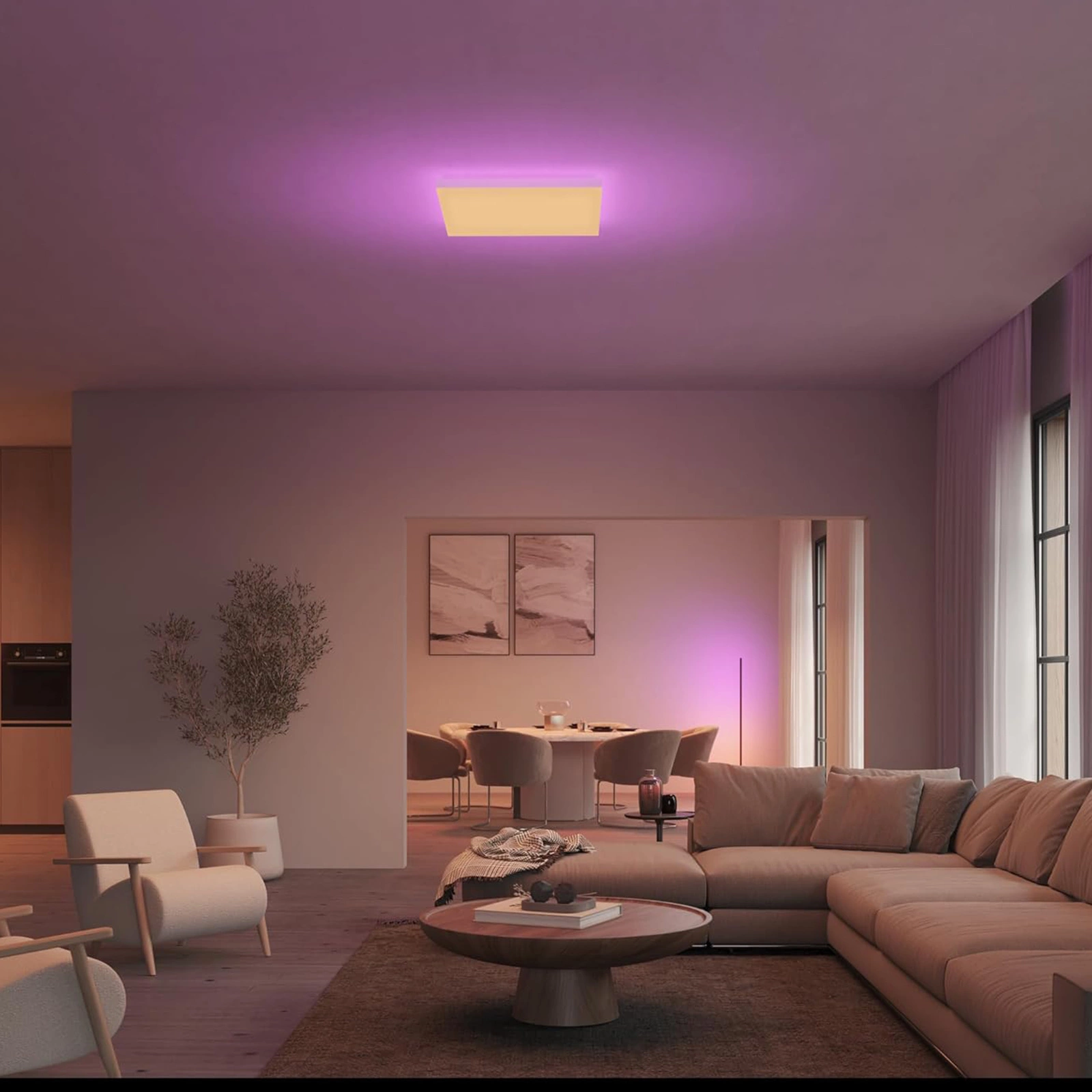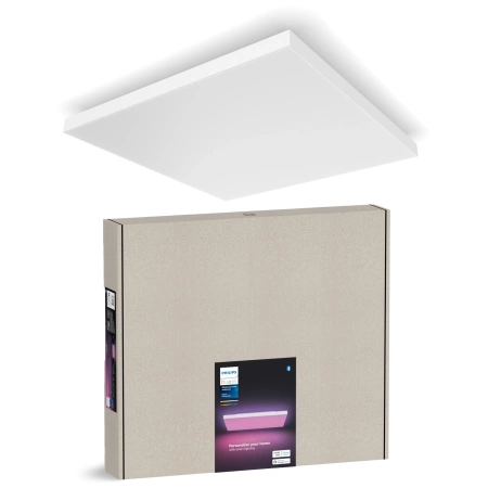 Lampa sufitowa Philips Hue Datura zachwyca swoją nowoczesną formą i wyjątkową funkcjonalnością. Dwa niezależnie sterowane źródła światła (przednie i tylne) pozwalają uzyskać zjawiskowe, kolorowe efekty lub elegancki blask w dowolnej tonacji. Dzięki równomiernemu rozproszeniu światła na całej powierzchni, Datura wypełnia pomieszczenie miękką i intensywną poświatą.
