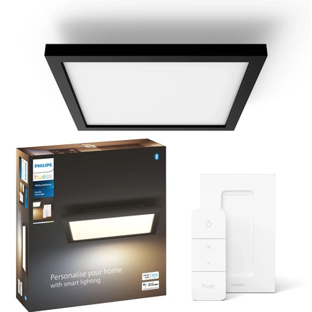 Przenieś oświetlenie Twojego wnętrza na wyższy poziom dzięki nowoczesnej inteligentnej lampie sufitowej Philips HUE Aurelle. Jej elegancki, kwadratowy kształt oraz czarny kolor idealnie wpasują się w każde współczesne wnętrze, od salonu po sypialnię czy biuro. Dzięki zintegrowanej technologii LED o mocy 19 W, lampa dostarcza imponujący strumień świetlny 1940 lm. Oznacza to doskonałą skuteczność świetlną, która pozwoli Ci cieszyć się pełnym spektrum barw - od ciepłych 2200 K po chłodne 6500 K. Poznaj komfort zmiennej barwy światła (CCT), która dostosowuje się do Twojego nastroju i zadań.