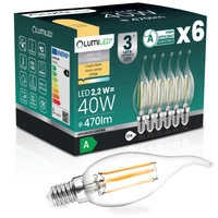 6x Żarówka LED E14 Świeczka BA35 2,2W 470lm = 40W 2700K Ciepła 360° Filament KLASA A LUMILED