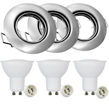 Zestaw 3x Oprawa halogenowa ruchoma GOLDLUX (Polux) okrągła nikiel + żarówka LED GU10 3,5W