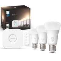 3PAK Żarówka LED E27 A60 9,5W 2700K Ciepła PHILIPS HUE White Bluetooth Zigbee + Mostek Hue Bridge + Przełącznik Dimmer Switch