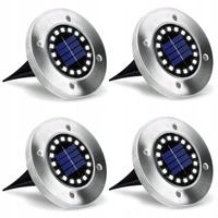 Zestaw 4x Lampki Solarne Ogrodowe LED Wbijane Dyski Dogruntowe 0.96W 6500K Zimna z Czujnikiem Zmierzchu Srebrna IP44 Masterled