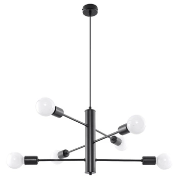 Lampa Sufitowa Wisząca Zwis 6x E27 Żyrandol Nieregularna Czarna Industrialna Duomo Sollux