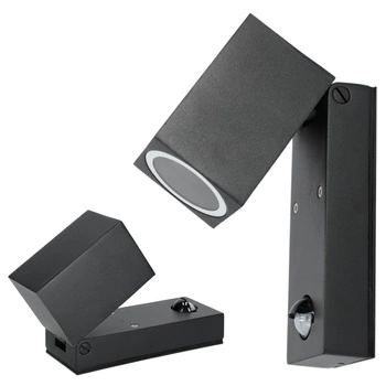 Kinkiet Ogrodowy Lampa Elewacyjna Zewnętrzna LED GU10 IP44 Czarna Czujnik QUAZAR 15 LX KOBI