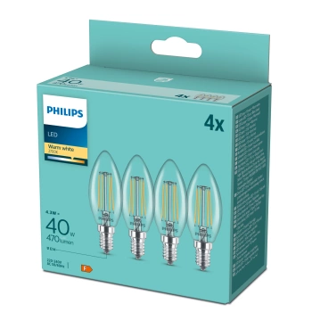 4x Żarówka LED E14 Świeczka B35 4.3W = 40W 470lm 2700K Ciepła 300° FILAMENT Essential Philips