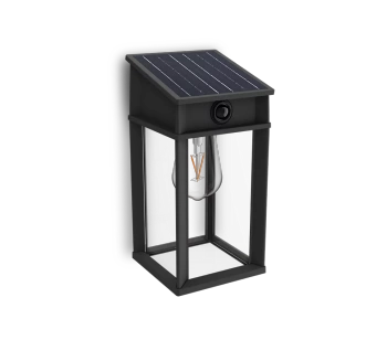 Kinkiet Ogrodowy Lampa Solarna Elewacyjna Zewnętrzna LED 3.2W 470lm 2700K IP44 z Czujnikiem Ruchu i Zmierzchu Czarna Geri Ultra Efficient Philips