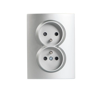 Gniazdo Sieciowe Zasilające Podwójne 16A Uziemienie Prostokątne Srebrne LOGI Kanlux
