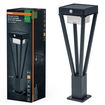 Chwilowo niedostępnyLampa Solarna Ogrodowa Słupek Zewnętrzny Stojący LED z Czujnikiem Ruchu i Zmierzchu 6W 550lm 3000K Ciepła Czarny IP44 Endura Osram
