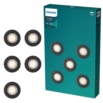 5x Oprawa Podtynkowa Wpuszczana LED GU10 Stała Aluminiowa Okrągła Czarna Peridot Philips