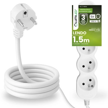 Przedłużacz Sieciowy Kabel z Uziemieniem Listwa Zasilająca 5 Gniazda 1.5m Biały Sznur Lendo Lumiled