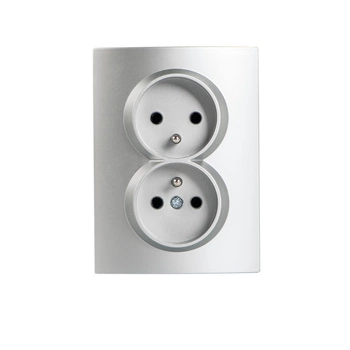 Gniazdo Sieciowe Zasilające Podwójne Ochrona Styków 16A Uziemienie Prostokątne Srebrne LOGI Kanlux