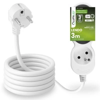 Przedłużacz Sieciowy Kabel z Uziemieniem Listwa Zasilająca 3 Gniazda 3m Biały Sznur Lendo Lumiled