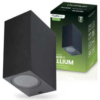 Kinkiet Ogrodowy Elewacyjny Lampa Zewnętrzna 2xGU10 ALLIUM Czarna Kwadrat LUMILED