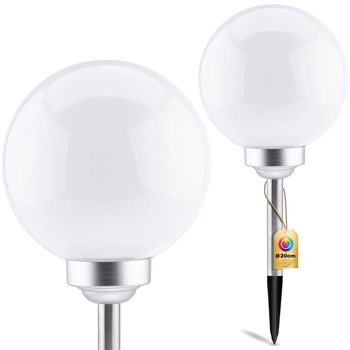 Lampa Ogrodowa LED Solarna KULKA 20cm Wbijana 3000K Ciepła + RGB Biała