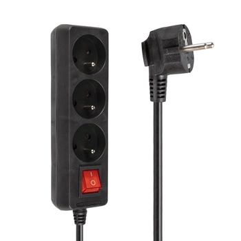 Przedłużacz sieciowy wtyk – 3x gniazdo z uziemieniem i wyłącznikiem 3m 3x1mm 16A Czarny