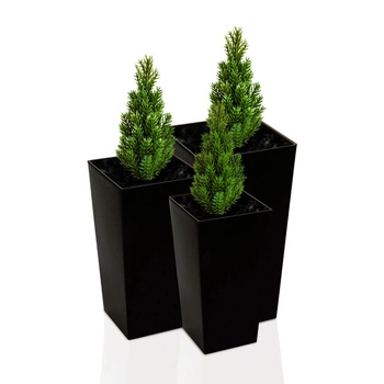 Zestaw 3x Donica Trapez Ogrodowa z Wkładem Doniczka Dekoracyjna 14/19/25cm Domowa Kwadratowa do Kwiatów Czarna POŁYSK