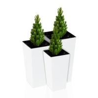 Zestaw 3x Donica Trapez Ogrodowa z Wkładem Doniczka Dekoracyjna 14/19/25cm Domowa Kwadratowa do Kwiatów Biała POŁYSK