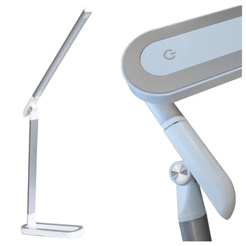 Lampka Biurkowa LED Stołowa 7W 400lm 4000K Neutralna 120° Biała Srebrna Ściemnialna Madera Sanico Goldlux