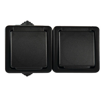 Gniazdo Sieciowe Zasilające Podwójne Ochrona Styków 16A Uziemienie IP54 Prostokątne Czarne TEKNO Kanlux