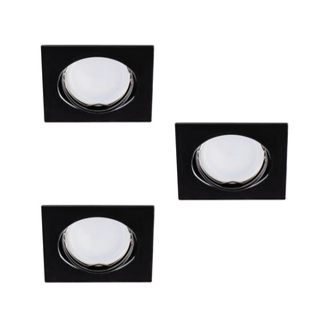 Zestaw 3x Oprawa sufitowa podtynkowa TRIBIS II GU10 PAR16 10W Kwadratowa Ruchoma Czarna + Żarówka GU10 400lm 3000K Ciepła KANLUX