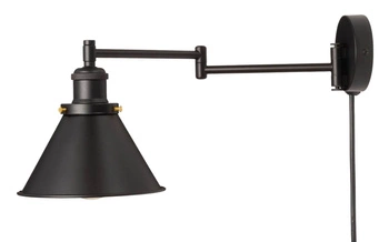 Lampa Ścienna Czarna E27 Kinkiet Klosz Łamana z Kablem Loftowa