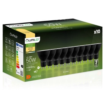 Zestaw 10x Żarówka LED GU10 6W = 50W 580lm 3000K Ciepła 120° Czarna LUMILED