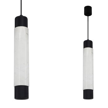 Chwilowo niedostępnyLampa wisząca MARBLE 1xGU10 Podłużny Klosz Walec Czarna Biała ML6341 Milagro Metal + Marmur